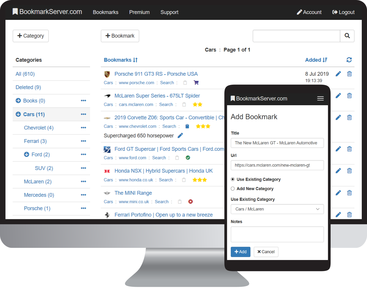 - Use the Add Bookmark button to bookmark any web page direct from your web browser.